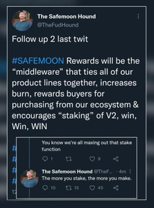 Well, yesterday Ryan elaborated on that tweet even further saying, “Follow up 2 last twit. #SAFEMOON Rewards will be the “middleware” that ties all of our product lines together, increases burn, rewards buyers for purchasing from our ecosystem & encourages “staking” of V2, win, Win, WIN.”