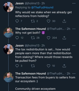 “Why would we stake when we already get reflections from holding?” inquired another SFM holder.