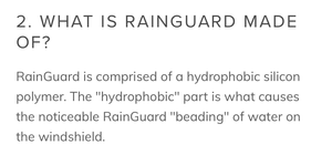 SafeMoon Holder B: (Image below reads: RainGuard is compromised of a hydrophobic silicon polymer. The “hydrophobic” part is what causes the noticeable RainGuard “beading” of water on the windshield)