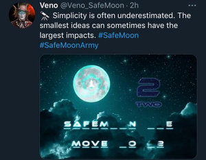 “Simplicity is often underestimated. The smallest ideas can sometimes have the largest impacts. #SafeMoon #SafeMoonArmy” Veno tweets.