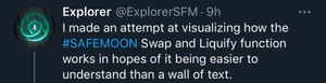 To further explain Swap & Liquify, Explorer, one of our wonderful Discord moderators stated, “I made an attempt at visualizing how the #SAFEMOON Swap and Liquify function works in hopes of it being easier to understand than a wall of text.“