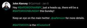 banner on the site, etc. Need you all to help spread the word.” – John Karony, SafeMoon CEO